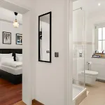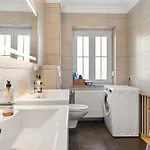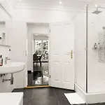 The apartment is equipped with a bathroom that features a hair dryer, toiletries, and bath sheets. Furthermore, a separate toilet and a shower is available.